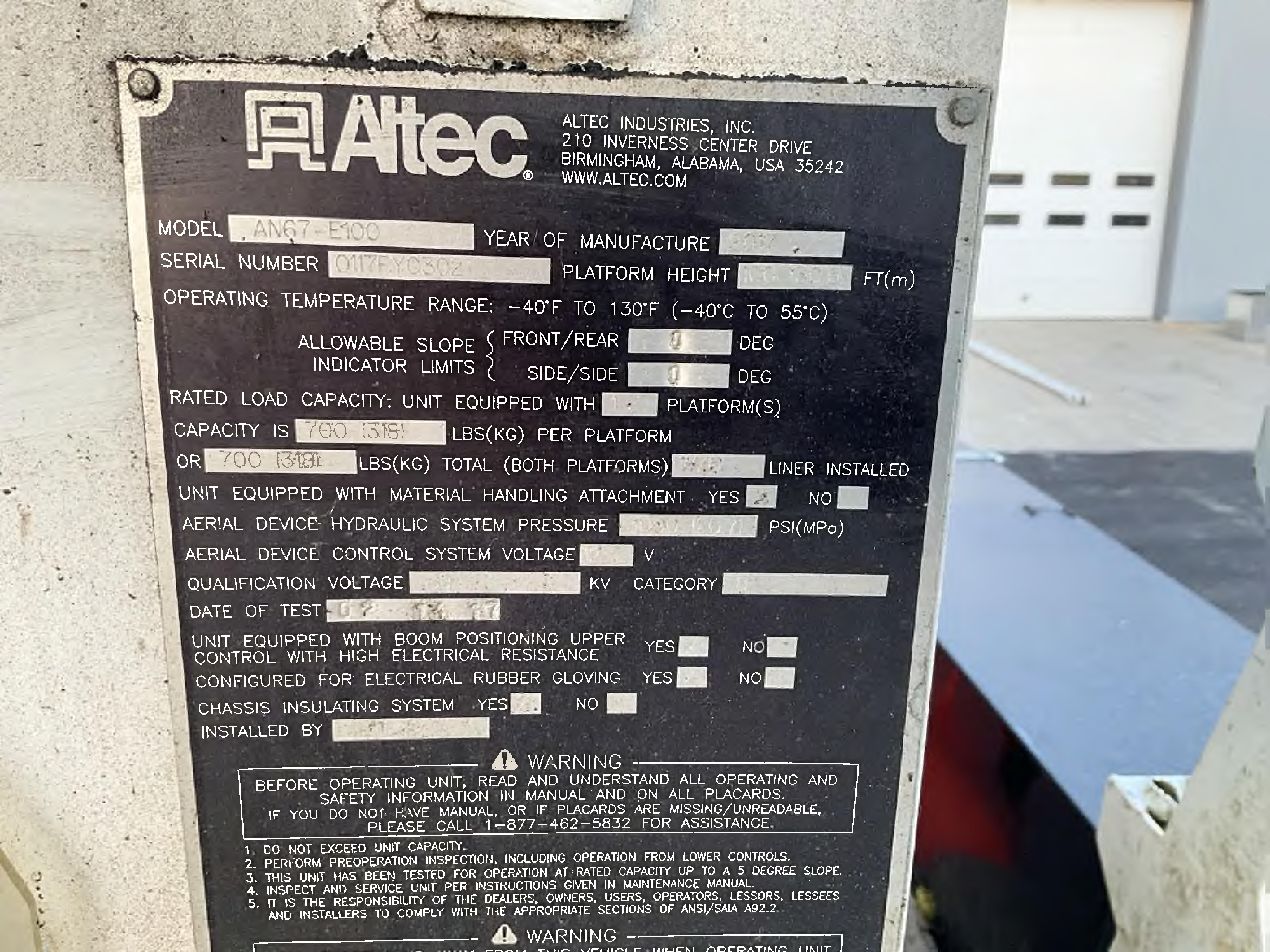 2018 ALTEC AN67-E100-MH
