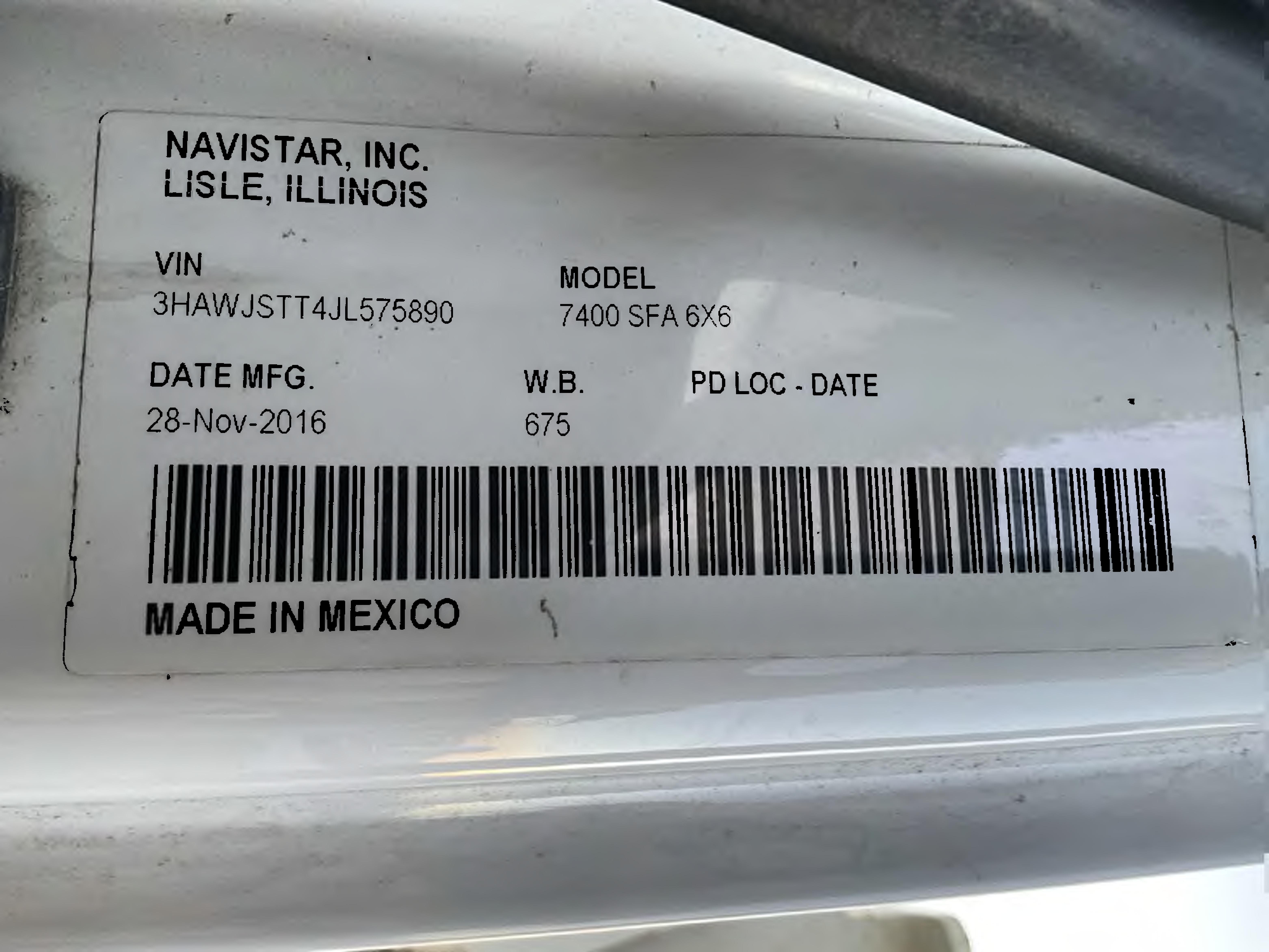 Chassis VIN: 3HAWJSTT4JL575890