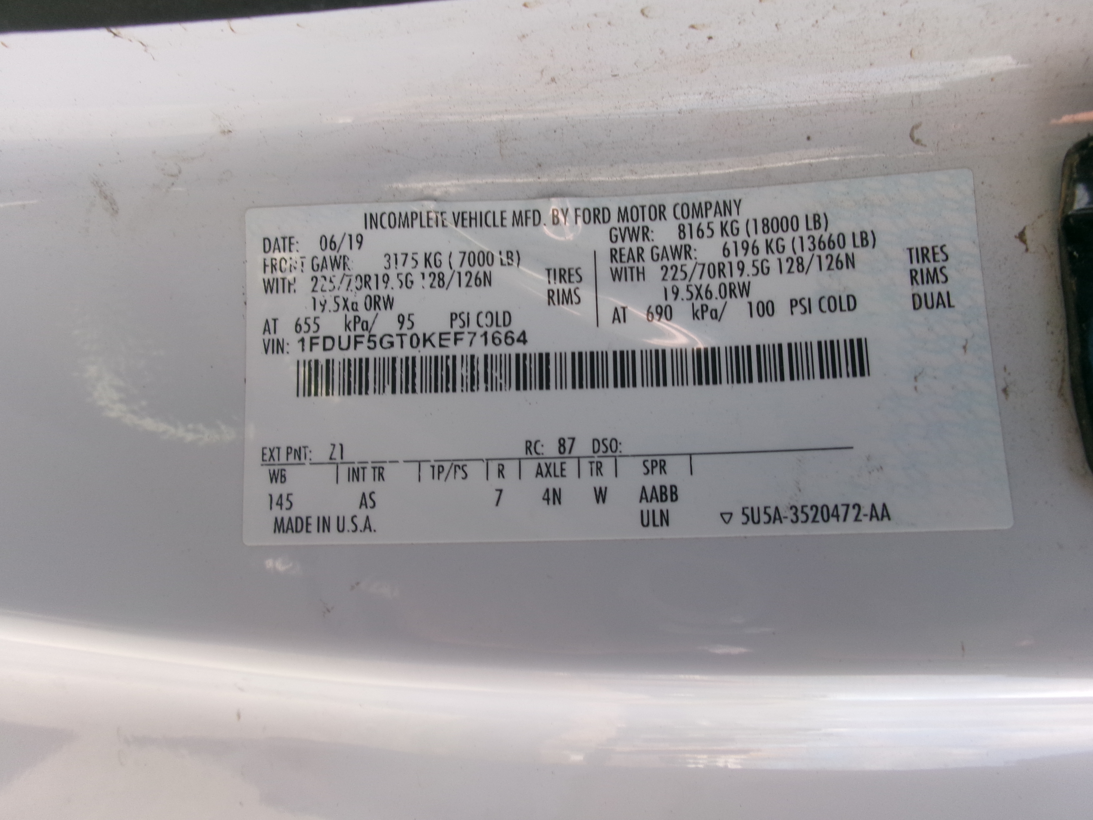 Chassis VIN: 1FDUF5GT0KEF71664