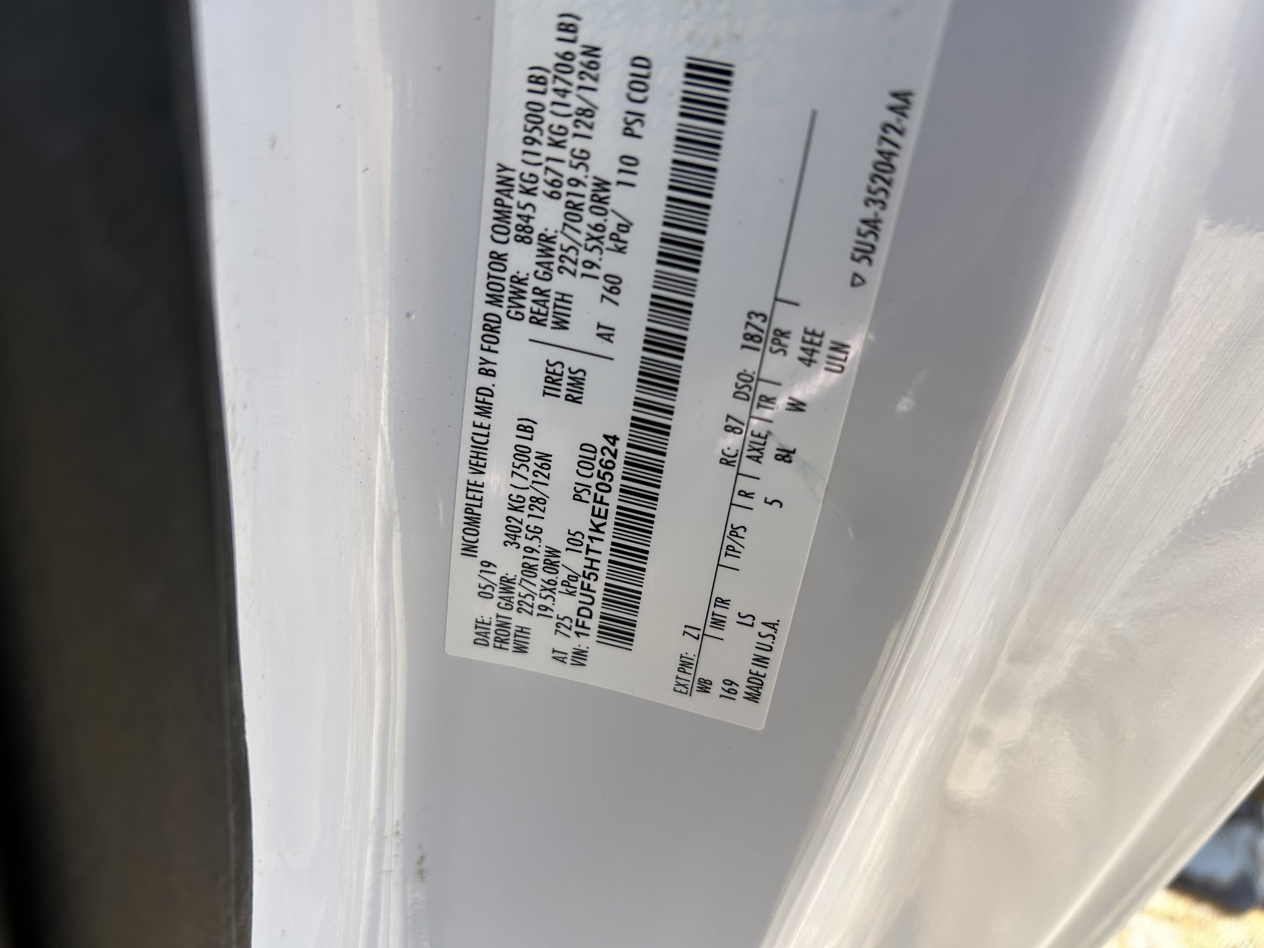 Chassis VIN: 1FDUF5HT1KEF05624